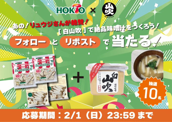賞品:白山吹×ホクトきのこで作る神うま味噌汁(10名様)