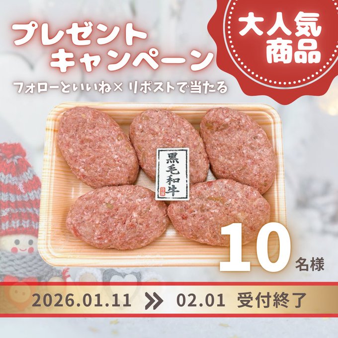 賞品:手作り黒毛和牛ハンバーグ5個入り(10名様)