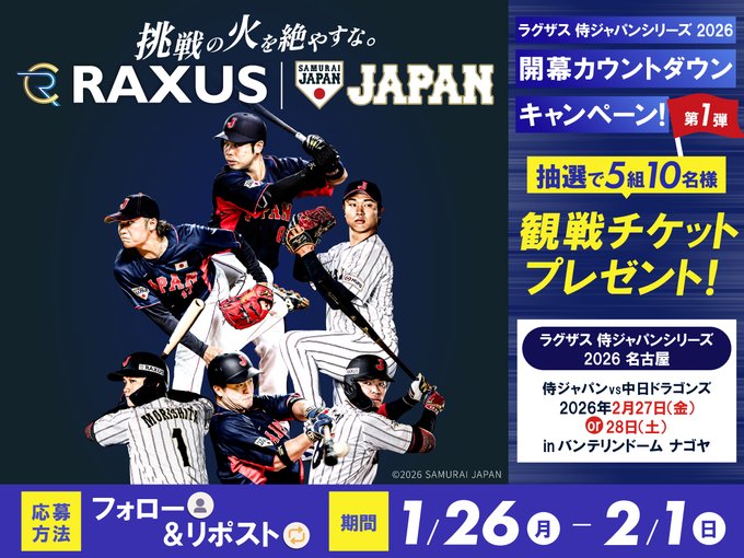 ラグザス 侍ジャパン シリーズ 2026 開幕カウントダウンキャンペーン