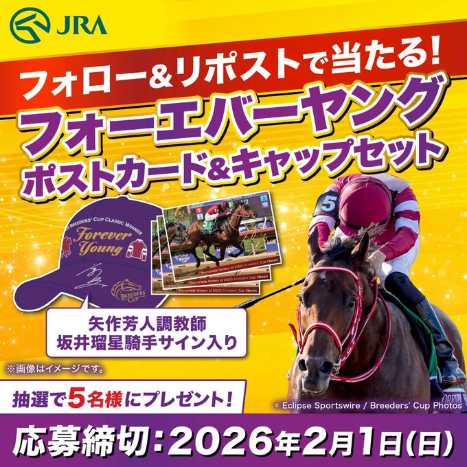賞品:フォーエバーヤングのBCクラシック優勝記念グッズ(5名様)