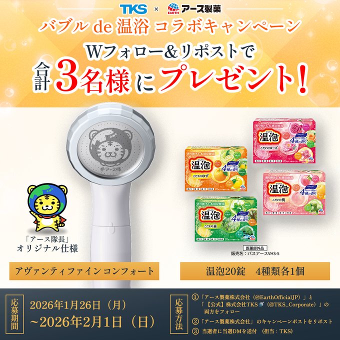 @EarthOfficialJPと@TKS_Corporateをフォロー&キャンペーン対象ポストをリポストしてご応募ください。