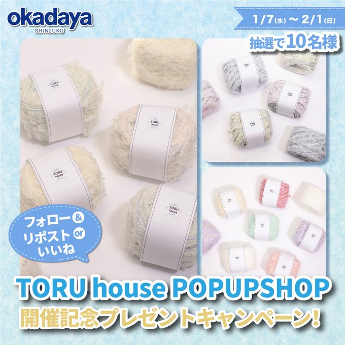 賞品:TORU house 毛糸アソートパック3玉セット(10名様)