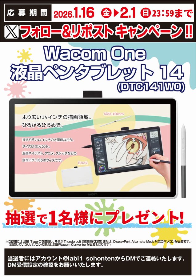 【X懸賞】Wacom One 液晶ペンタブレット 14を1名様にプレゼント