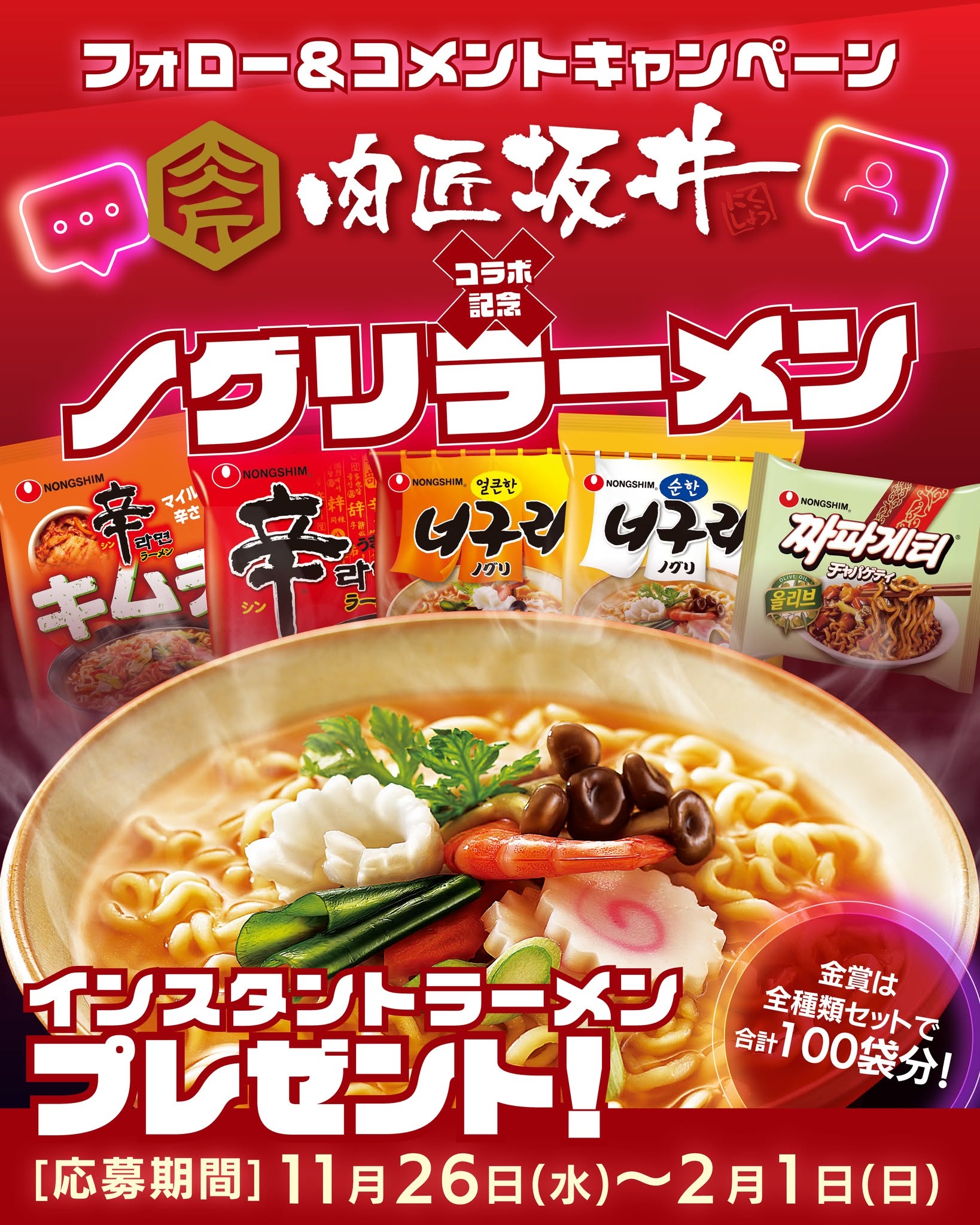 肉匠坂井×ノグリラーメン コラボ記念 フォロー&コメントキャンペーン