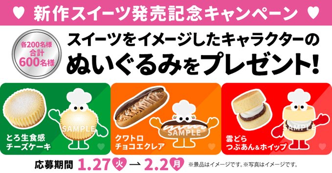 賞品:あなたが選んだ推しスイーツのぬいぐるみ(合計600名様)