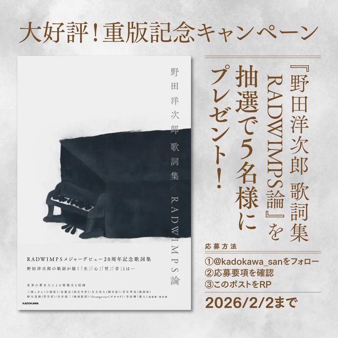 賞品:『野田洋次郎 歌詞集 RADWIMPS論』(5名様)