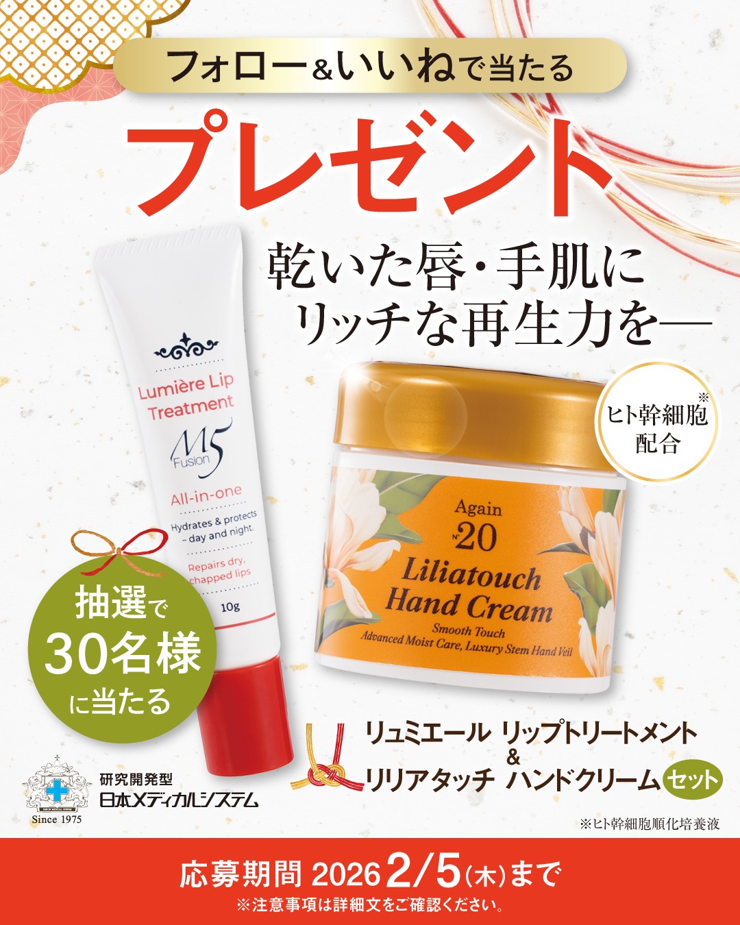 賞品:リュミエールリップトリートメント & リリアタッチハンドクリーム(30名様)