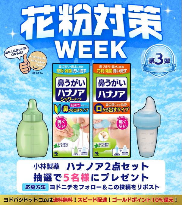 【X懸賞】小林製薬「ハナノアa」&「ハナノアb」2種セットを5名様にプレゼント 2026.02.01ヨドバシ@日用品専門‐プレゼントキャンペーン 賞品:小林製薬 「ハナノアa」&「ハナノアb」2種セット(5名様) 締切:2026年2月3日(火)👉フォロー&リポスト👉鼻から派?口から派?✍️※詳細はキャンペーンページにてご確認ください。応募はこちらから