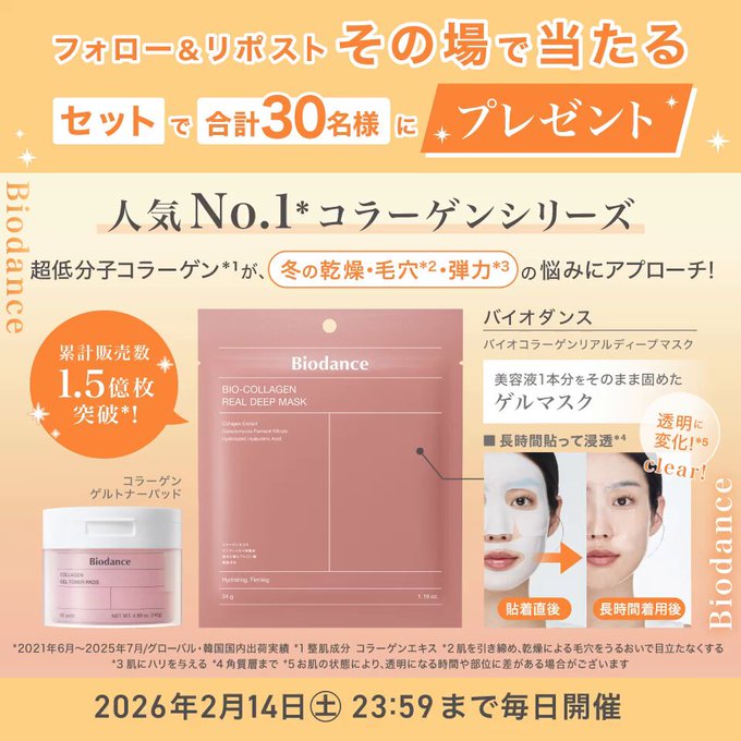 賞品:Biodance ゲルマスク&ぷるぷる摩擦レストナーパッド(30名様)