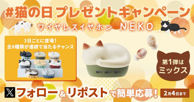 賞品:猫のワイヤレスイヤホン radius NEKO true wireless earphone(1名様)