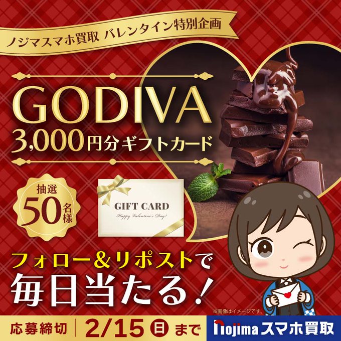 賞品:GODIVA 3,000円分ギフトカード(50名様)