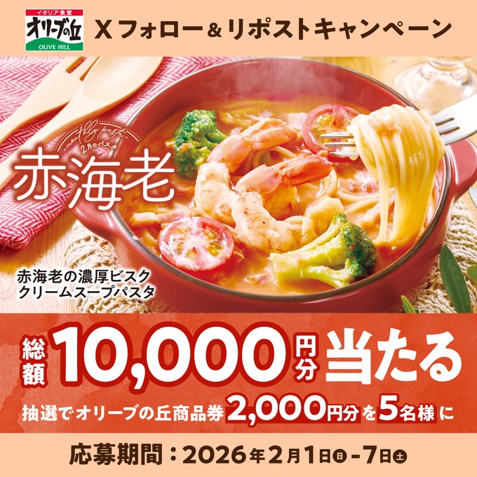 オリーブの丘公式X(Twitter)アカウントをフォロー&キャンペーン対象ポストをリポストしてご応募ください。