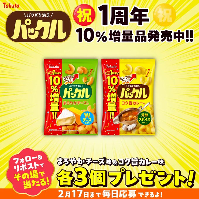 キャラメルコーン【東ハト公式】アカウントをフォロー&キャンペーン対象ポストをリポストしてご応募ください。