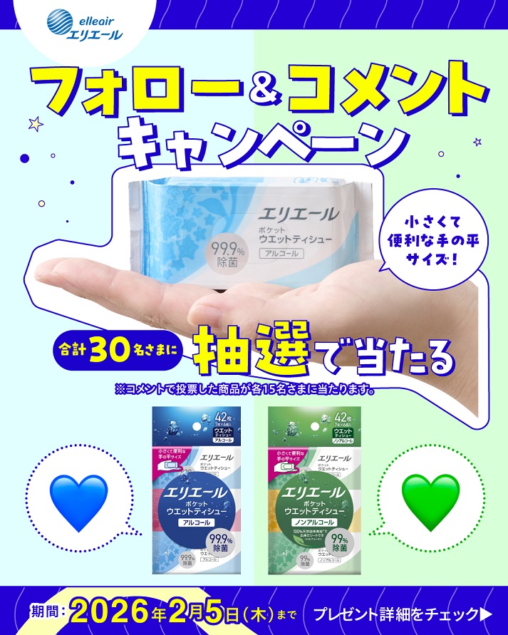 【Instagram懸賞】エリエール ポケットウエットティシューを30名様にプレゼント