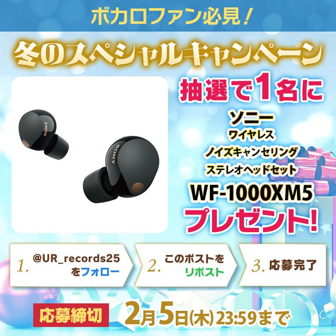 賞品:ソニー WF-1000XM5(1名様)