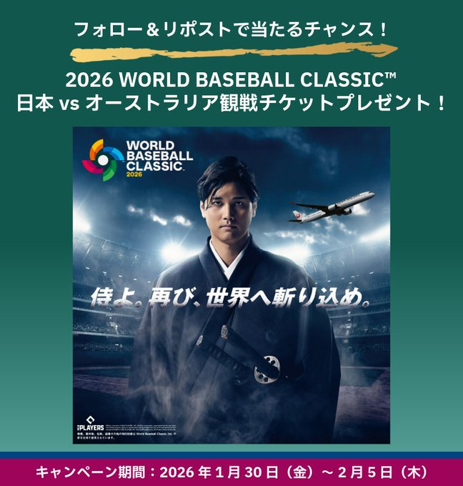 【X懸賞】「2026 WORLD BASEBALL CLASSIC™ 日本 vs オーストラリア」観戦チケットを1組2名様にプレゼント