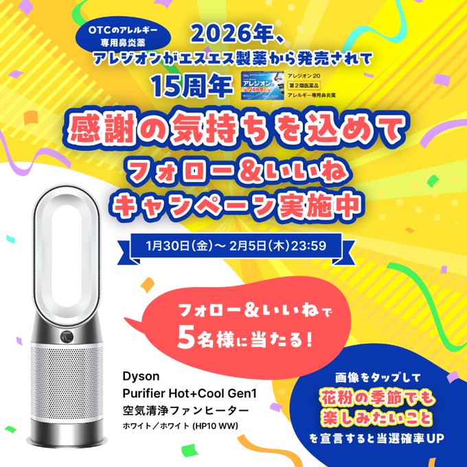 賞品:Dyson Purifier Hot+Cool Gen1 空気清浄ファンヒーター(5名様)