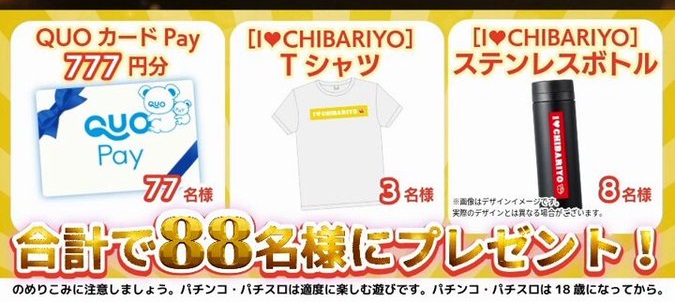 賞品:QUOカードPay777円分、Tシャツ、ステンレスボトル(合計88名様)