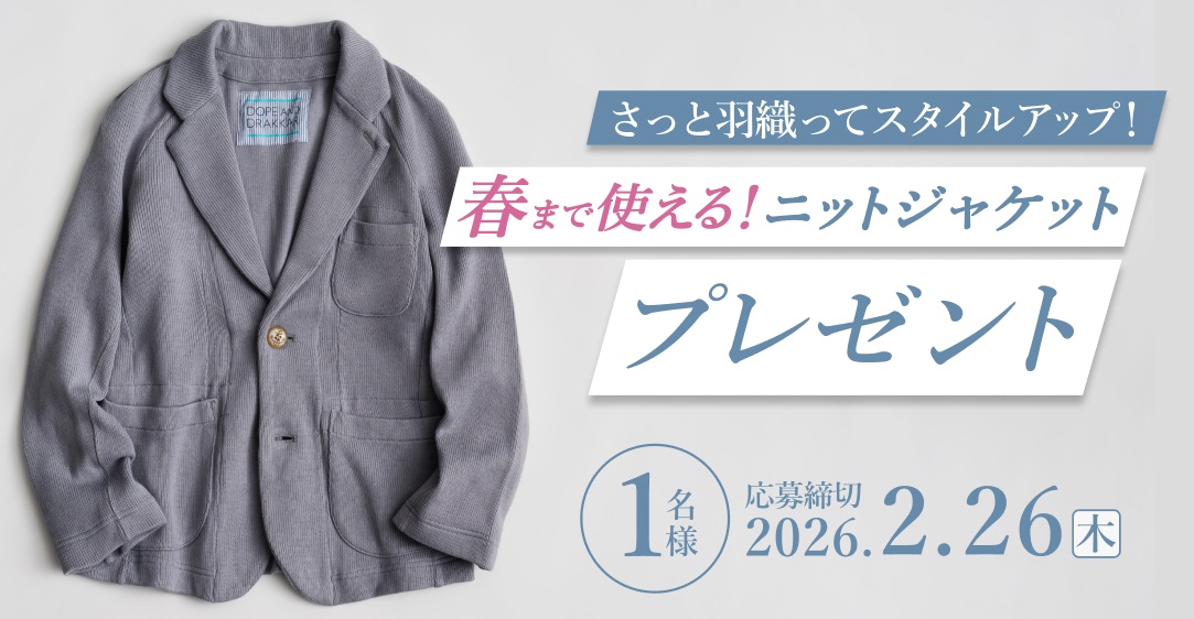 DOPE&DRAKKAR ニットテーラードジャケットを1名様にプレゼント 2026.02.03藤巻百貨店‐プレゼントキャンペーン 賞品:DOPE&DRAKKAR ニットテーラードジャケット(1名様) 締切:2026年2月26日(木)応募フォームより必要事項を入力してご応募ください。※詳細はキャンペーンページにてご確認ください。応募はこちらから