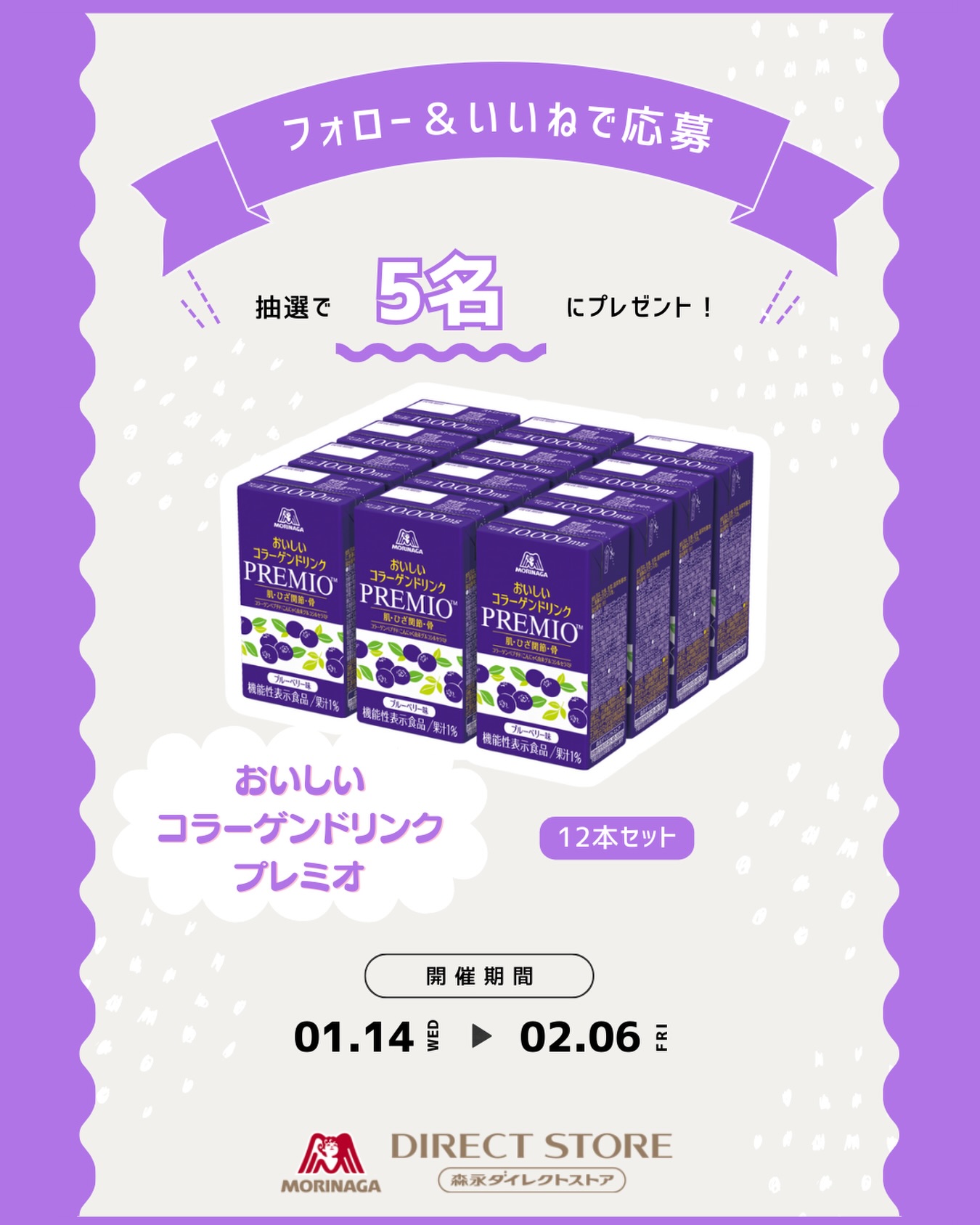 賞品:おいしいコラーゲンドリンク プレミオ 12本(5名様)