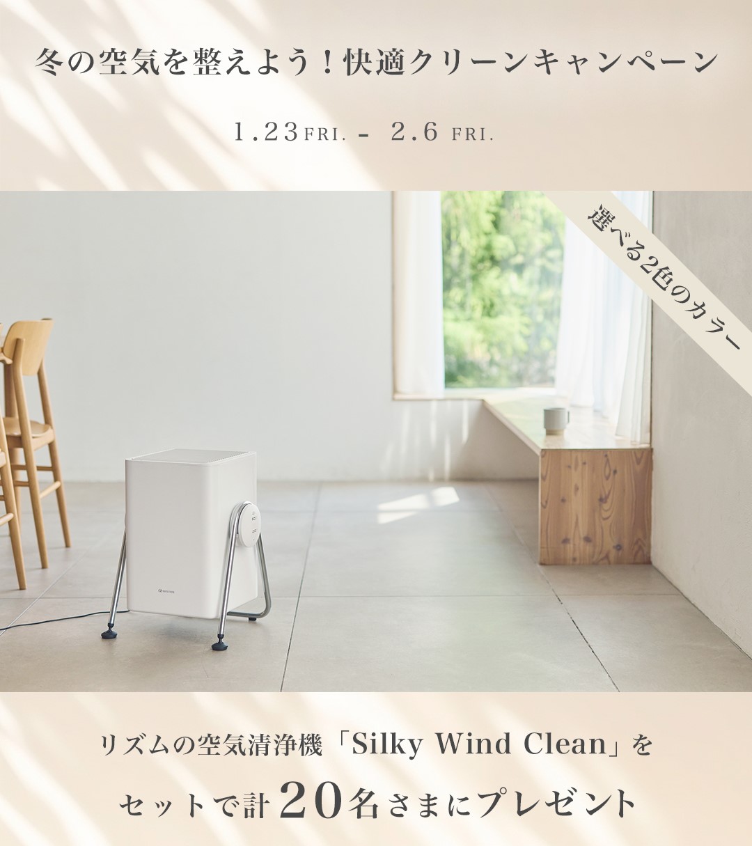 【X・Instagram懸賞】リズムの空気清浄機「Silky Wind Clean」を20名様にプレゼント 2026.02.04RHYTHM リズム株式会社‐冬の空気を整えよう!快適クリーンキャンペーン 賞品:空気清浄機「Silky Wind Clean」(20名様) 締切:2026年2月6日(金)応募 ①@rhythm_1950をフォロー ②投稿をリポスト ②欲しいカラー(ライトグレー/ダークグレー)をコメントInstagramからも応募できます。※詳細はキャンペーンページにてご確認ください。応募はこちらから