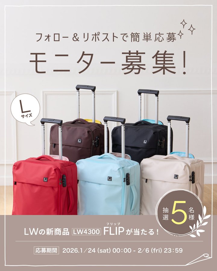賞品:バイカラーソフトキャリー LW 4300 FLIP Lサイズ(5名様)