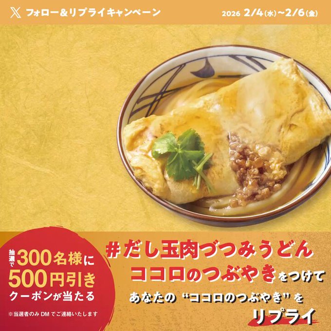 丸亀製麺‐だし玉肉づつみうどんココロのつぶやき キャンペーン