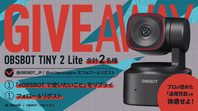 ①@OBSBOT_JP と @striderznagano をフォロー