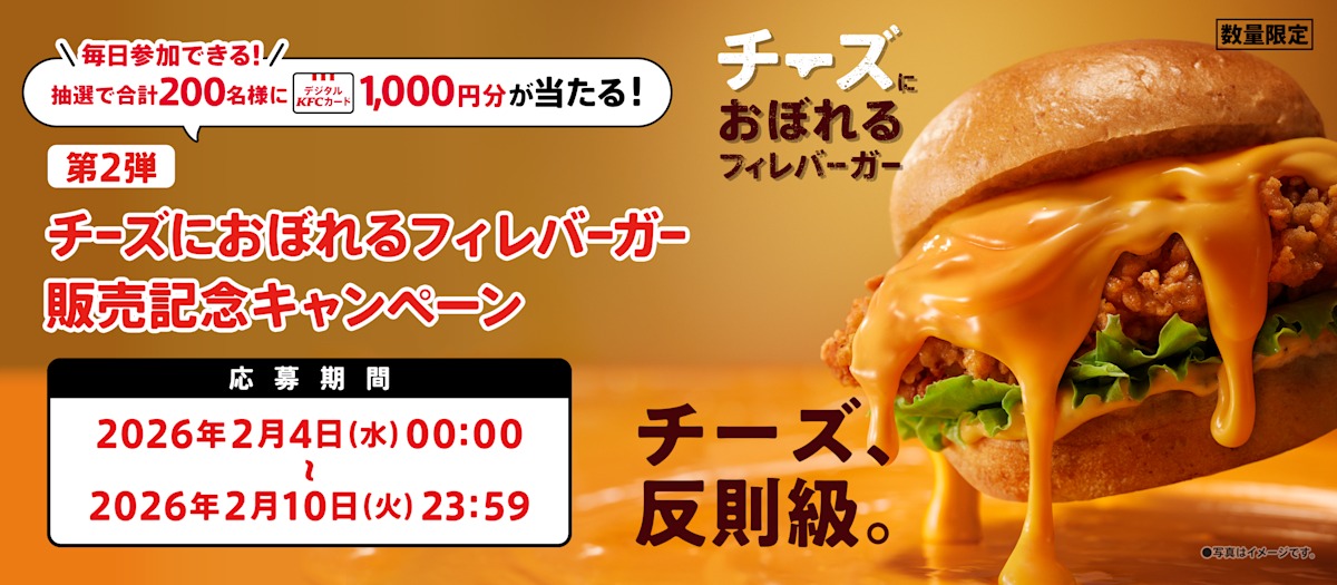 ケンタッキーフライドチキン‐チーズにおぼれるフィレバーガー販売記念キャンペーン第2弾