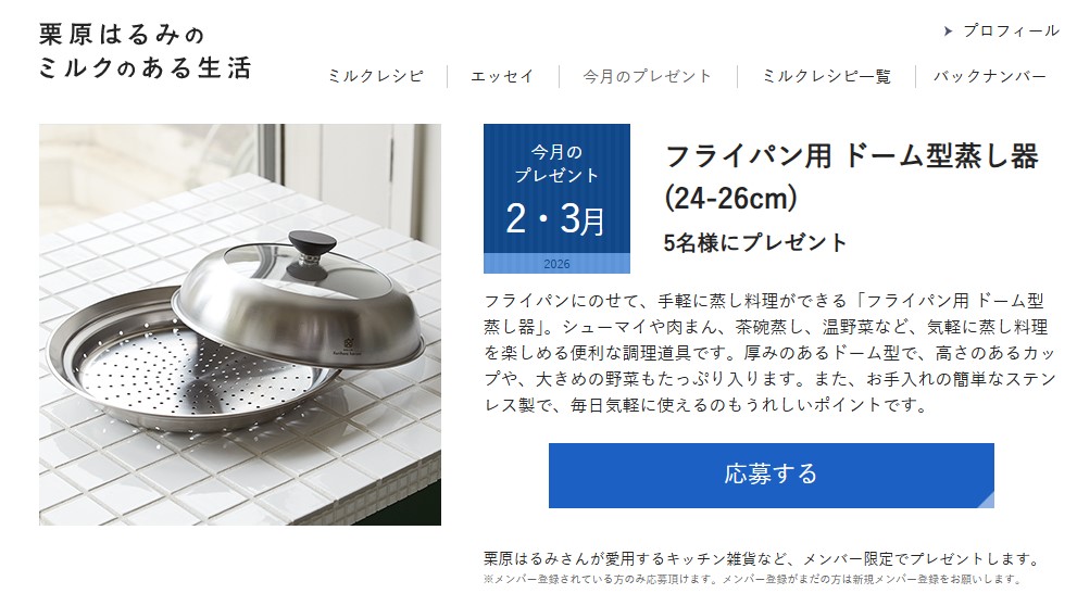 雪印メグミルク 栗原はるみのミルクのある生活‐プレゼントキャンペーン
