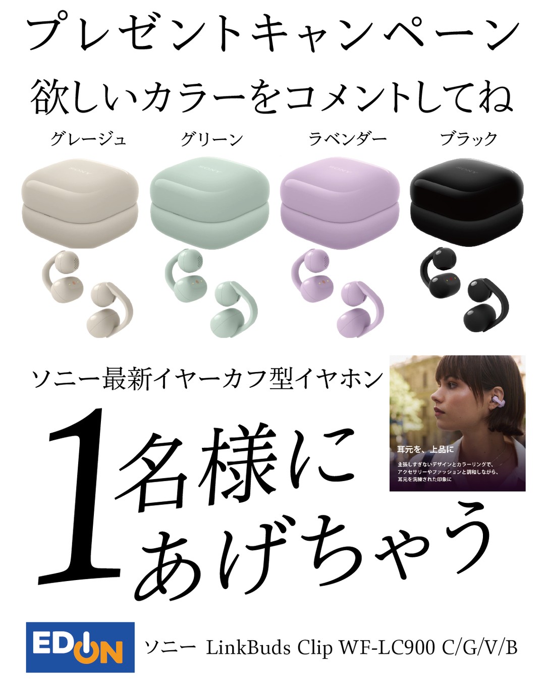 賞品:ソニー LinkBuds Clip(1名様)