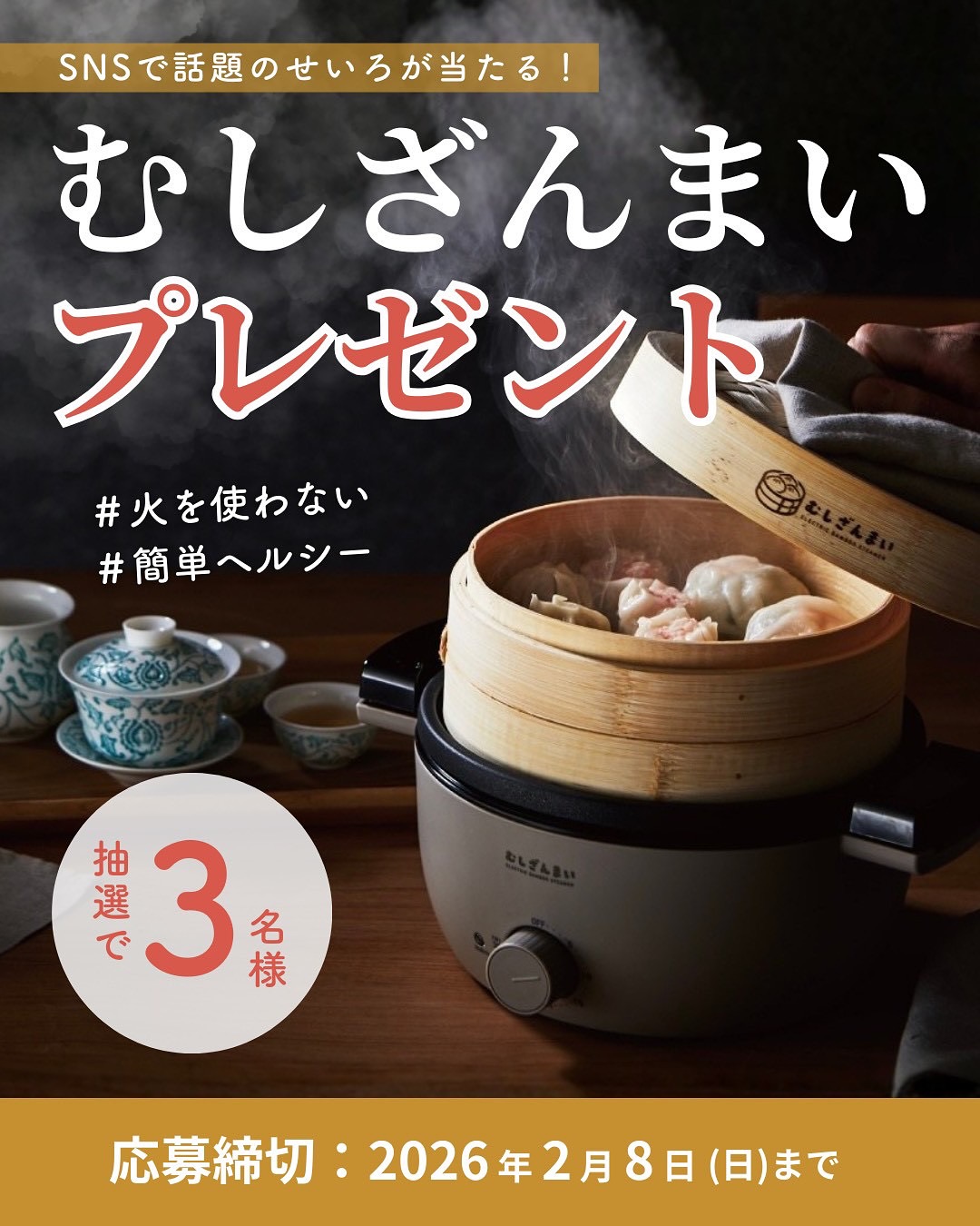 賞品:アピックス 電気せいろ蒸し器 むしざんまい グレージュ(3名様)