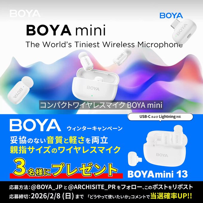 @BOYA_JP と @ARCHISITE_PRをフォロー&キャンペーン対象ポストをリポストしてご応募ください。