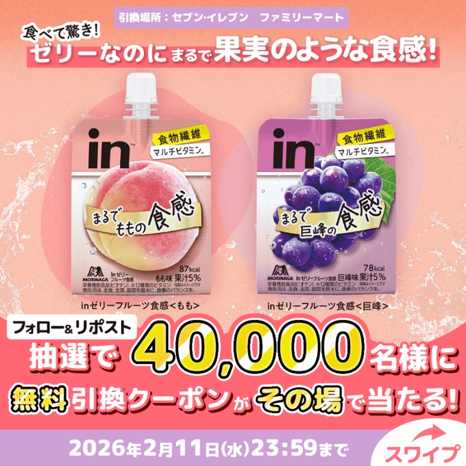 賞品:inゼリー フルーツ食感 無料引き換えクーポン(40,000名様)