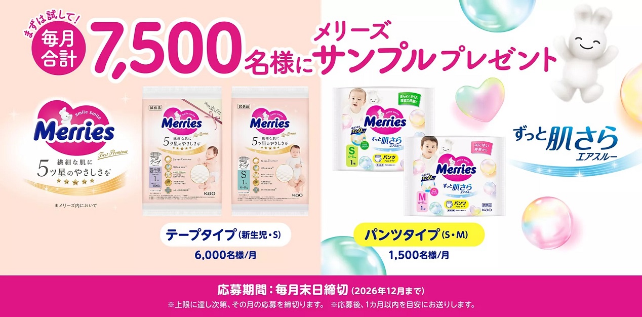メリーズ ご希望のおむつサンプルを毎月7,500名様にプレゼント