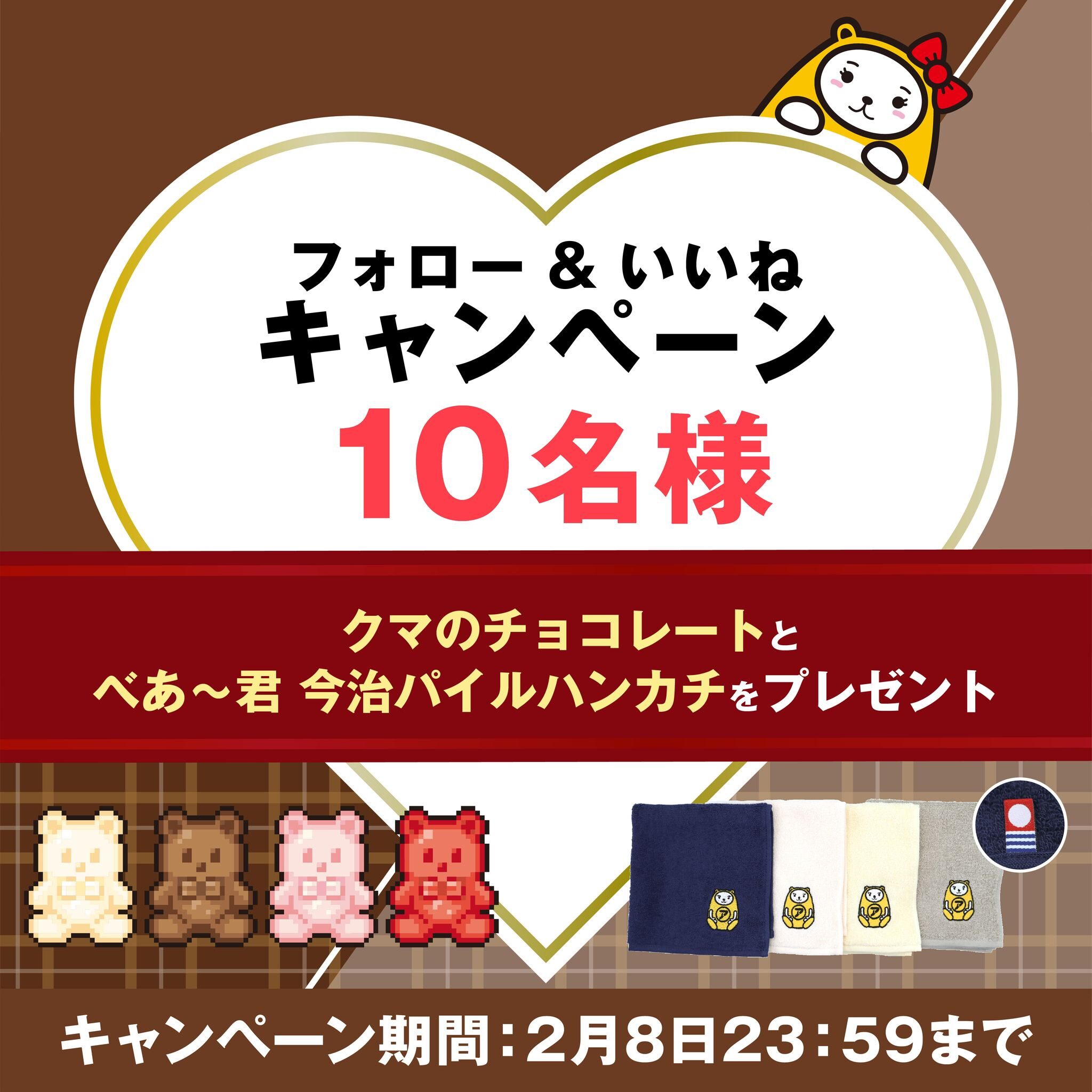 賞品:バルセロナ創業の老舗が贈るクマのチョコレートとべあ~君 今治パイルハンカチ(10名様)