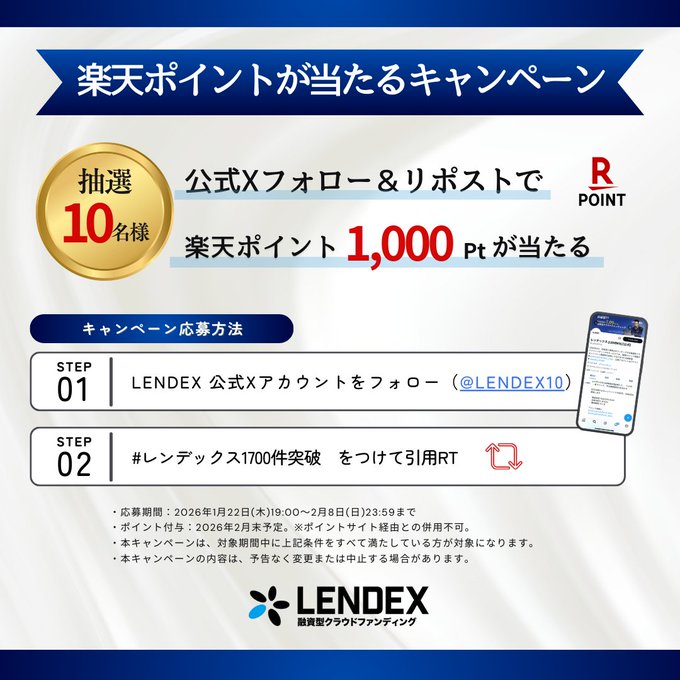レンデックス(LENDEX)‐累計ファンド数1,700件突破記念