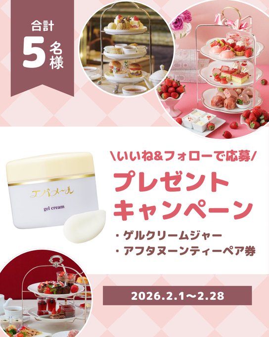 賞品:アフタヌーンティーのペアチケットとゲルクリームジャー(5名様)
