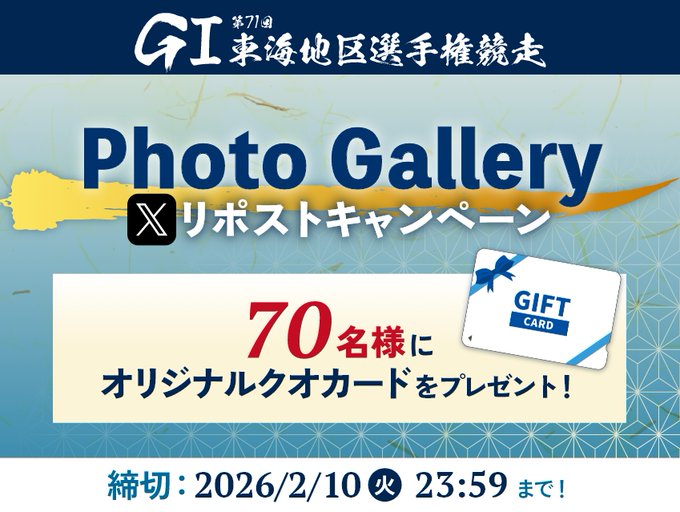 ボートレースとこなめ‐GⅠ第71回東海地区選手権競走「Photo Gallery Xリポストキャンペーン」
