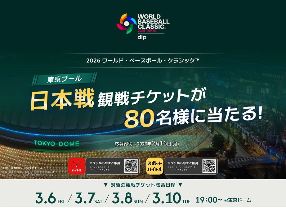 バイトル・スポットバイトル‐2026 ワールド・ベースボール・クラシック™東京プール 日本戦 観戦チケットプレゼントキャンペーン