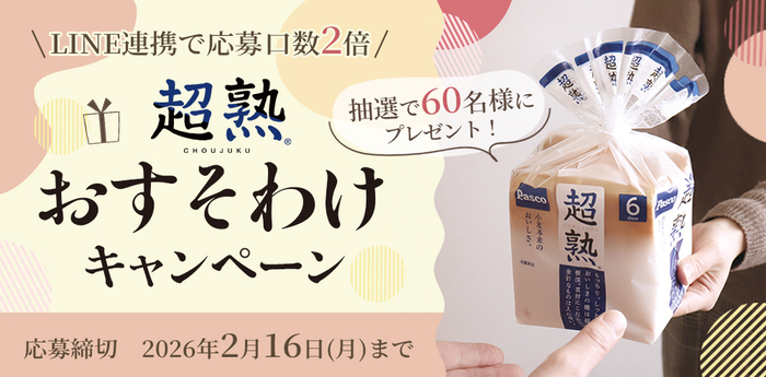 賞品:「超熟 6枚スライス」3袋&「超熟山型 5枚スライス」3袋(60名様)