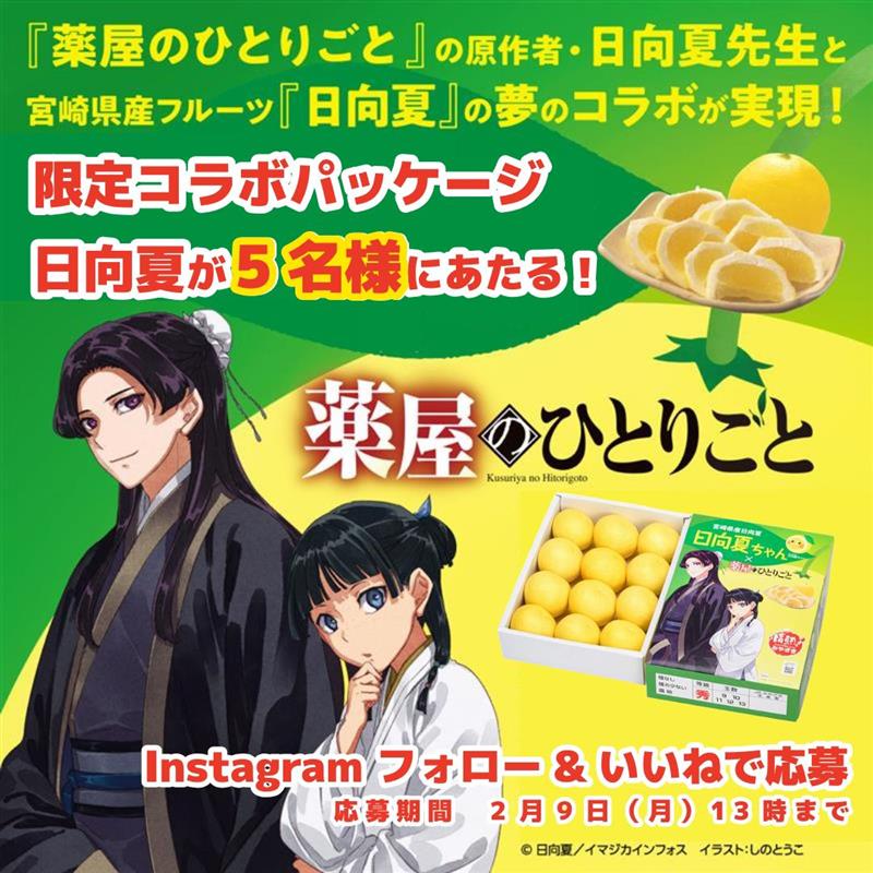賞品:「薬屋のひとりごと」のキャラクターをあしらった特別仕様の宮崎県産日向夏(5名様)