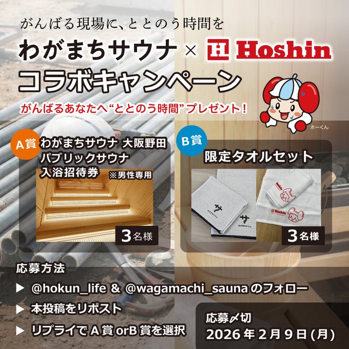 ▶ホーシン(@hokun_life)&わがまちサウナ(@wagamachi_sauna)のフォロー
