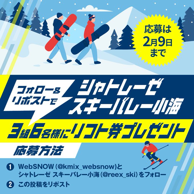 @kmix_websnow @reex_ski をフォロー&キャンペーン対象ポストをリポストしてご応募ください。