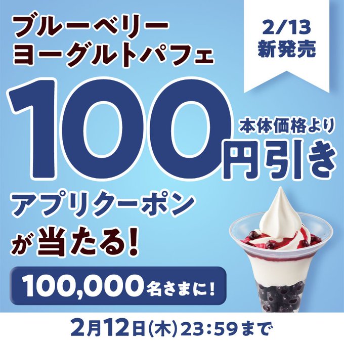 賞品:ブルーベリーヨーグルトパフェ 100円引きアプリクーポン(100,000名様)
