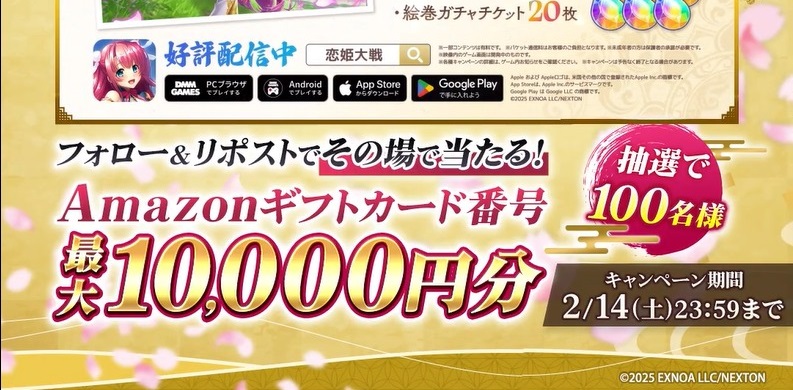 恋姫大戦officialアカウントをフォロー&キャンペーン対象ポストをリポストして、キャンペーンページからご応募ください。
