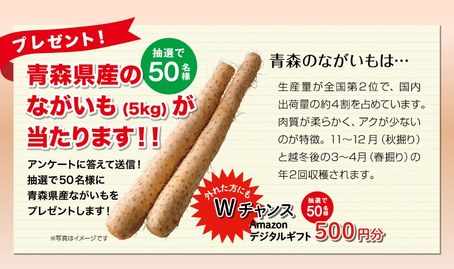 青森いきいき野菜2026 アンケートに答えて青森県産のながいもを当てよう!