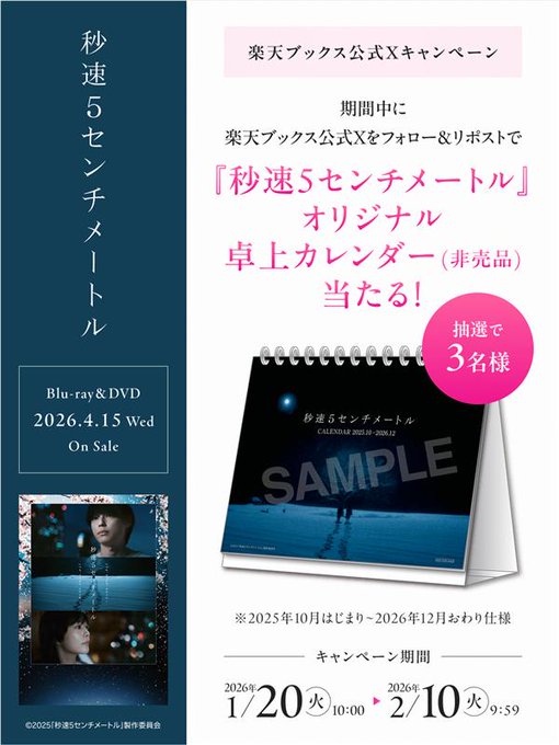 賞品:『秒速5センチメートル』オリジナル卓上カレンダー(3名様)