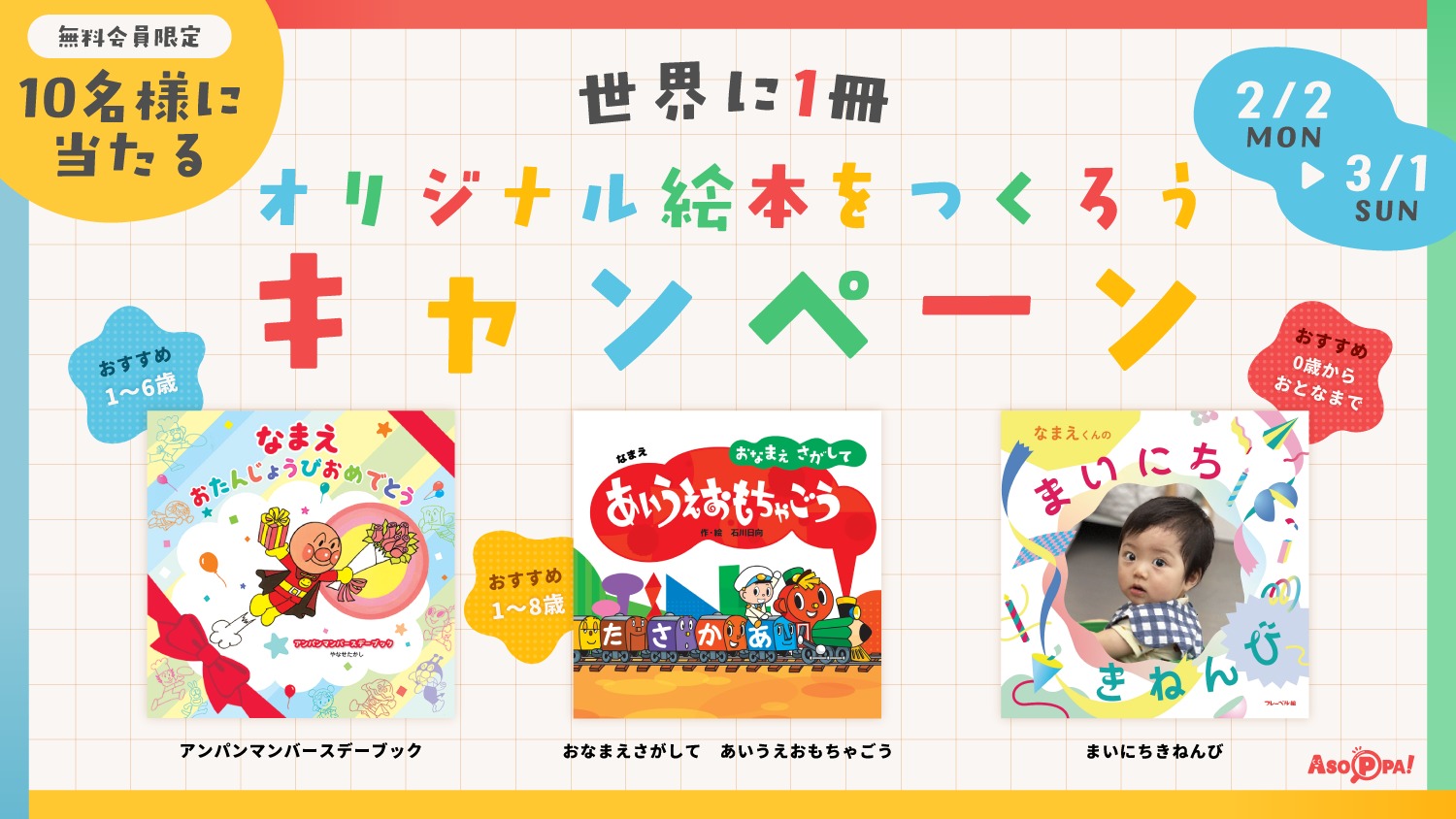 「セカイチ」で絵本が作れるギフトコードを10名様にプレゼント 2026.02.08ASOPPA!‐世界に1冊 オリジナル絵本を作ろうキャンペーン 賞品:「セカイチ」で絵本が作れるギフトコード(10名様) 締切:2026年3月1日(日)ご応募には会員登録/ログインが必要です。※詳細はキャンペーンページにてご確認ください。応募はこちらから
