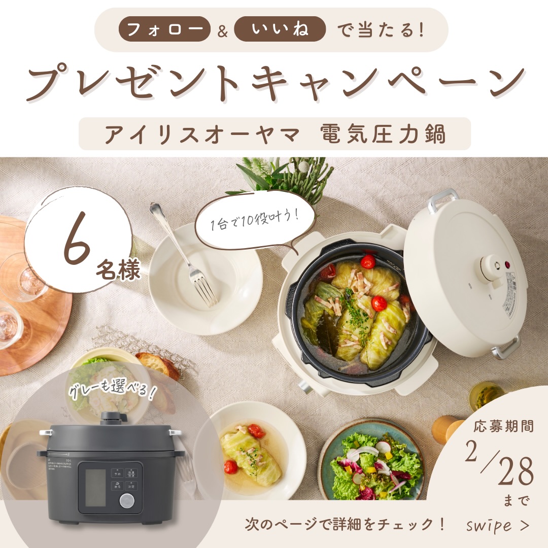 【Instagram懸賞】アイリスオーヤマ 電気圧力鍋を6名様にプレゼント